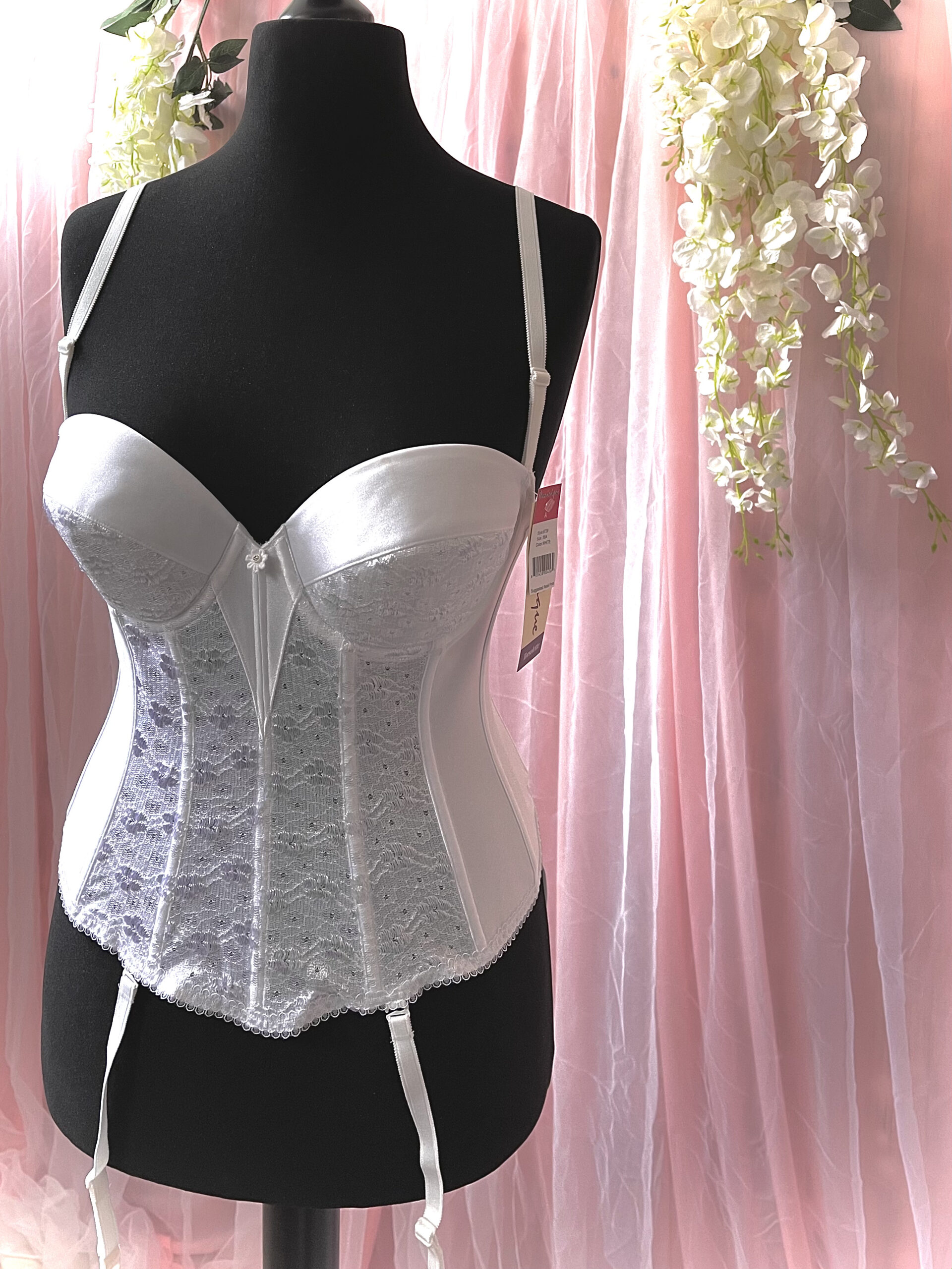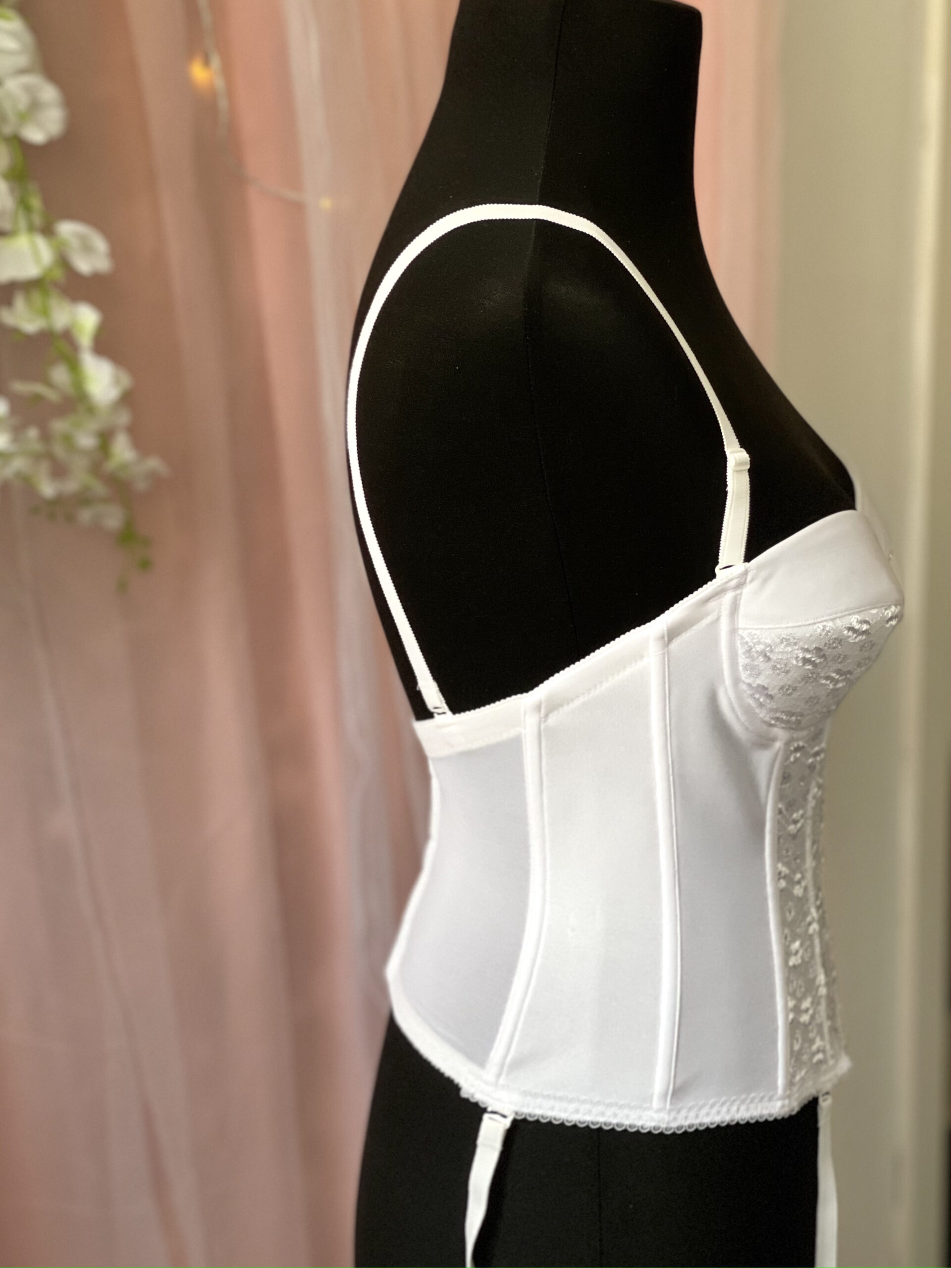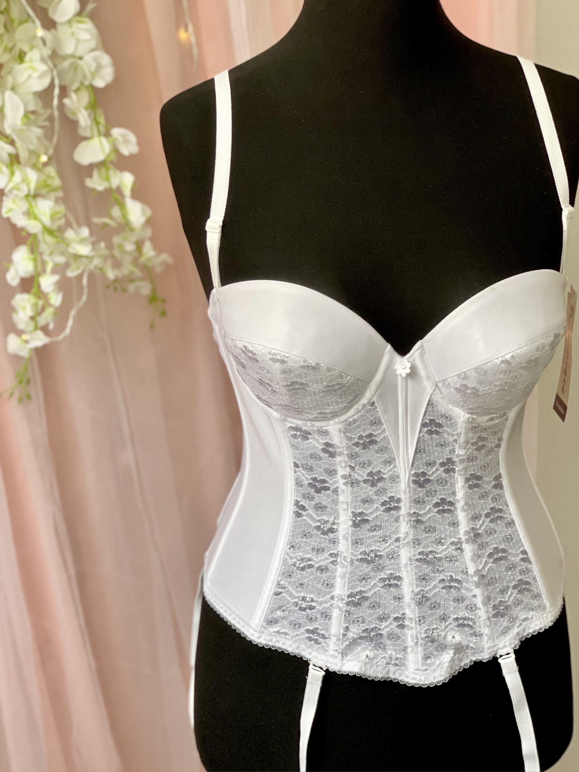 Sehr schöne Corsage mit einer wunderschönen Spitze verleihen dieser Corsage das gewisse Extra für einen romantischen Hochzeitstag. Die Corsage mit ihren eingearbeiteten Cups umformt Ihre Brüste und passt sich Ihrer Figur und vor allem Ihrem Kleid perfekt und nahtlos an. Strapshalter sind inbegriffen.